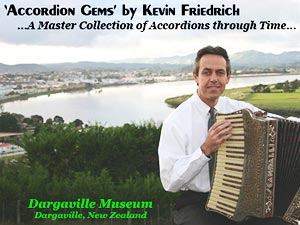 ![]() At the instigation of NZAA Life Member Kevin Friedrich, The Dargaville Museum agreed to host a major collection of accordions and memorbilia that he had collected over many years for the purpose of starting an accordion museum. The Accordion Gems collection serves as the anchor display in the newly established Music Room, the latest addition to the Dargaville Museum. In addition to a variety of instruments from the accordion family, the display includes original manuscripts, rare recordings, a 300 piece Accordion Figurine Collection and other accordion related items. The 'Accordion Gems' display by Kevin Friedrich was dedicated and opened on the 3rd December 2006. The Grand Opening of New Music Wing at the Dargaville Museum was held on the 21st October 2007 and the launching of Accordion Gems Exhibit in beautiful Kauri timber display cabinets was opened on 29th March 2009. ![]() For the 40th Anniversary of the NZAA in 2011, Kevin Friedrich organised a major historical display of the history of the NZAA and the accordion in New Zealand which ran for most of the 2011 year. In 2021 there will be an expansion of the 'Accordion Gems' to fit in the newer instruments and other accordion related items that have been added to the extensive collection of over 250 accordions. Dargaville Museum contact information for opening hours. Address: Harding Park, 32 Mount Wesley Coast Rd, Dargaville 0371, New Zealand. Phone: +64 9 439 7555 Email: info@dargavillemuseum.co.nz Website: www.dargavillemuseum.co.nz |